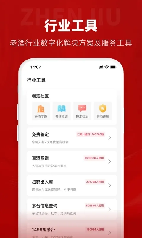 2. 丰富的真酒图谱,详尽介绍名酒产地和酿造工艺,设有鉴酒学院,助用户深入了解酒文化。