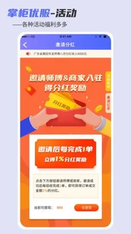 掌柜优服是专业SaaS服务平台,为师傅提供线上接单。有多种订单类型,支持即时报价抢单,提现快,服务好,覆盖面广。解决智能家居安装维修等问题,全国合作商众多,订单量大。