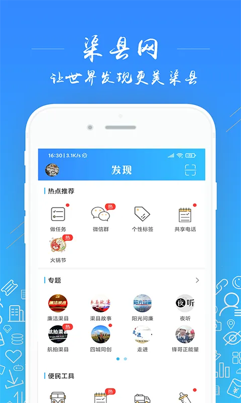 1. 高度本地化的信息枢纽,全面聚合渠县本地的新闻资讯、政务公告、社会动态、文化活动、征迁信息等,所有内容与本地居民生活息息相关,信息源直接可信。