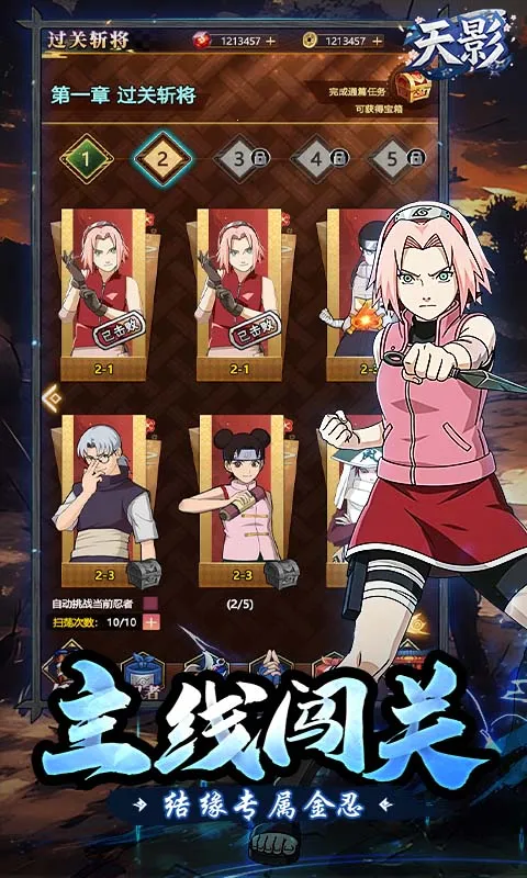 4. 主线闯关结缘专属金忍,忍者收集集结专属火影小队,超值首充九尾之子降临。