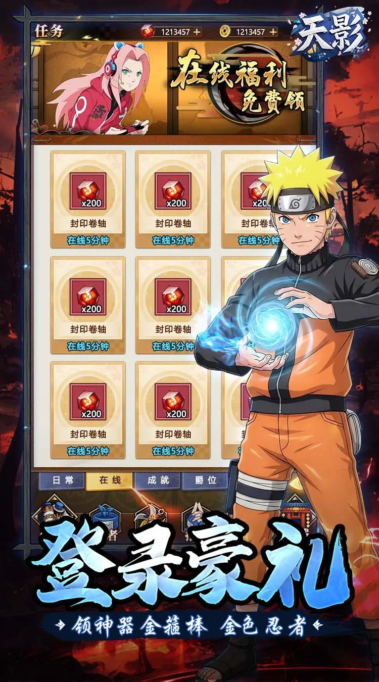 它的新版特性更是诱人。全场充值 0.1 折,太划算了!登录就送神器金箍棒和金将忍者。等级福利狂送 400 抽,主线闯关能结缘专属金忍,忍者收集可集结专属火影小队,超值首充还有九尾之子降临。无论你是火影迷想重温经典战斗,还是想体验刺激的卡牌对战,《天影奇缘》都能满足你。按照这些玩法,轻松享受游戏乐趣,快来开启你的火影冒险之旅吧!