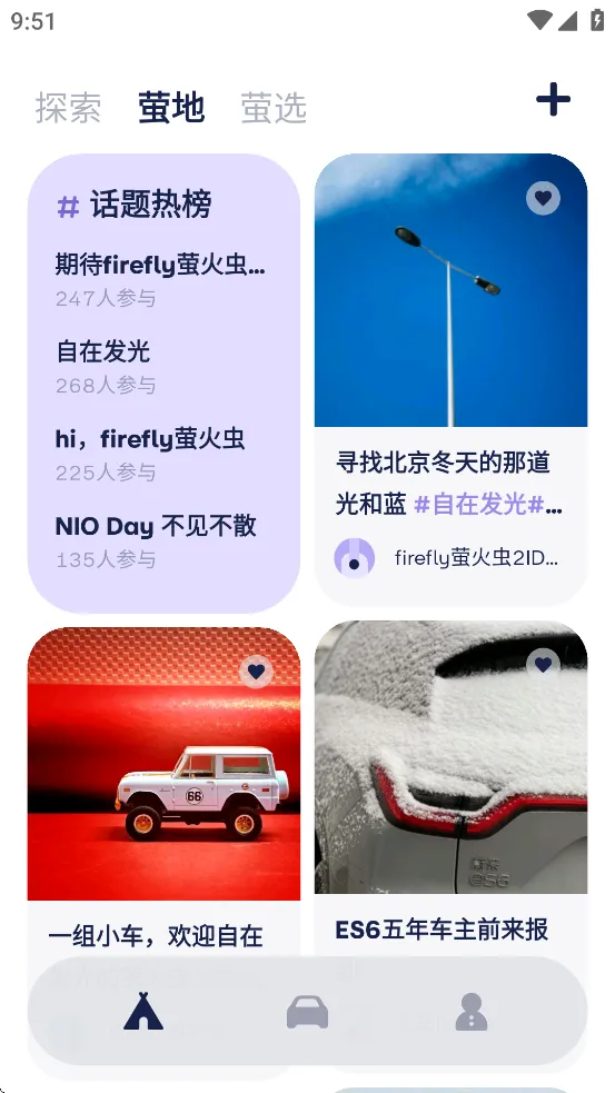 firefly萤火虫是蔚来旗下汽车综合服务应用。提供一站式服务,含官方资讯、车型浏览、试驾订购等。还有商城、社区交流及福利活动,具备智能电动与互联优势,满足多元用车需求 。