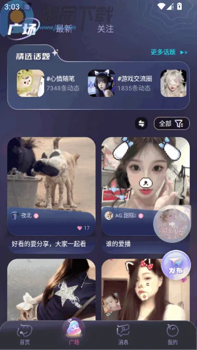 3. 广场话题丰富多元,在这里能结识同好,参与各种热门讨论,分享生活点滴,倾诉内心想法,轻松找到志同道合的伙伴。