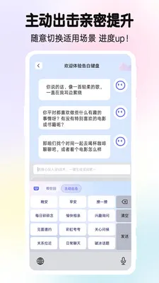 当想邀心仪对象约会时,告白键盘会自动扩展成完整自然且留有回复空间的邀请消息,让沟通更丝滑,情感连接更顺畅,亲密关系更牢固。