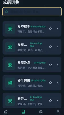 青简成语最新手机版是成语学习工具APP,集每日打卡、分类学习、词典查询、益智挑战于一体。有错题本和收藏家功能,界面简约深色,操作流畅,助学生、职场人及爱好者积累成语。