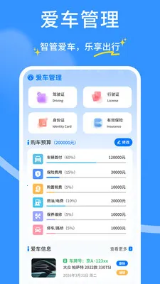 3. 支持我的爱车管理与爱车信息记录,助用户掌握行车安全知识,管理爱车与车险事务。