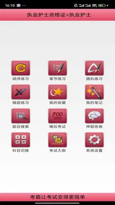 1、考霸护士能让练习紧跟考试大纲,所有题目依据新大纲编辑,从海量题目中精选并分类,让考试更简单。