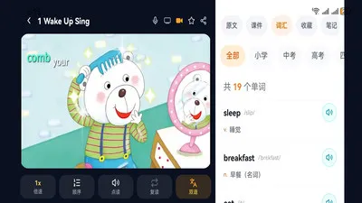 2、多媒体学习体验很棒。支持音视频播放,原生发音磨耳朵,智能字幕中英对照方便理解。还有随身听模式,让用户随时随地都能学英语。