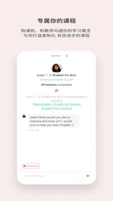 它提供一对一专属教学,针对痛点问题解决,依能力、需求、喜好打造定制化课程,满足任何语言、任何需求,如英语、日语等多种语言,阅读、口说、听力、托福、雅思等任选。