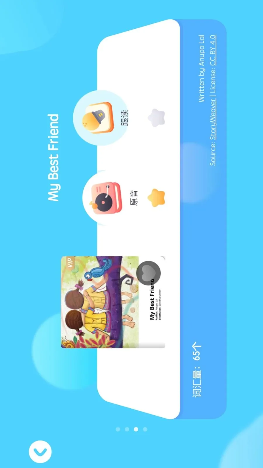 多多伴读精选全球主流英文分级阅读体系,有1800本原版绘本,持续更新。具备听读跟读、原版配音等功能,科学分级,还有定级测试,能记录阅读成长,新特性包括知名绘本、纯正发音、AI跟读等。