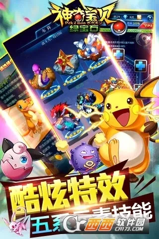 2、游戏中有400多种不同属性的神奇宝贝,各有独特技能与进化形态,可尽情收集、训练和研究。