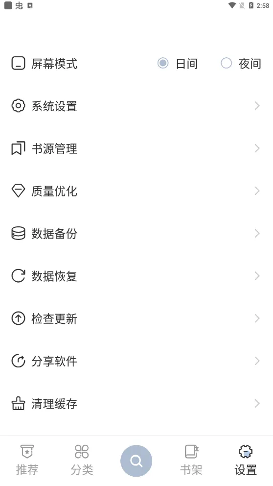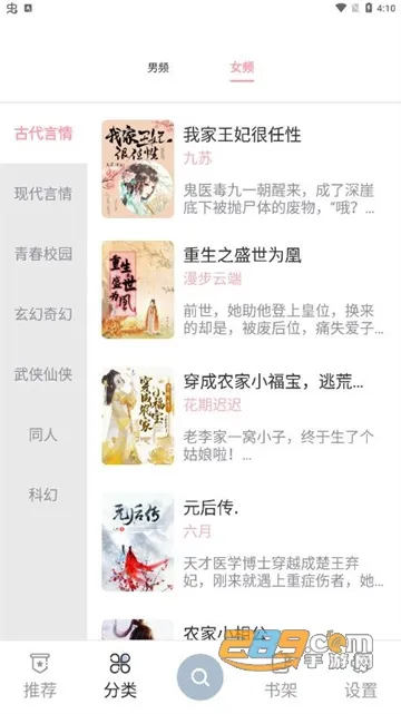 2、其分类详细,言情、科幻、武侠等主题一应俱全,还有搜索功能,能让用户快速找到喜欢的内容。