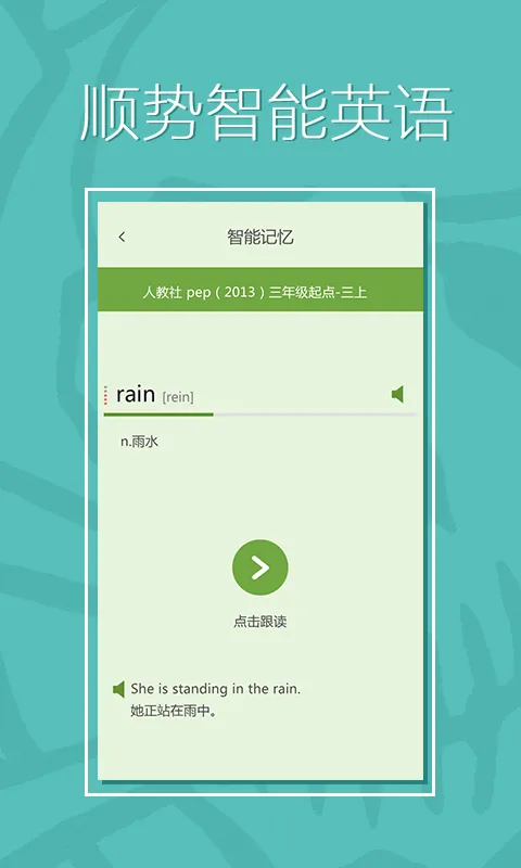 1、顺势智能英语使用先进人工智能技术,实现智能导航与全自动记忆,让单词及教材学习更轻松。