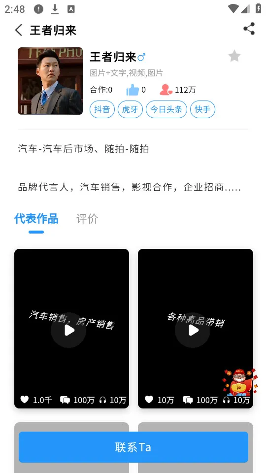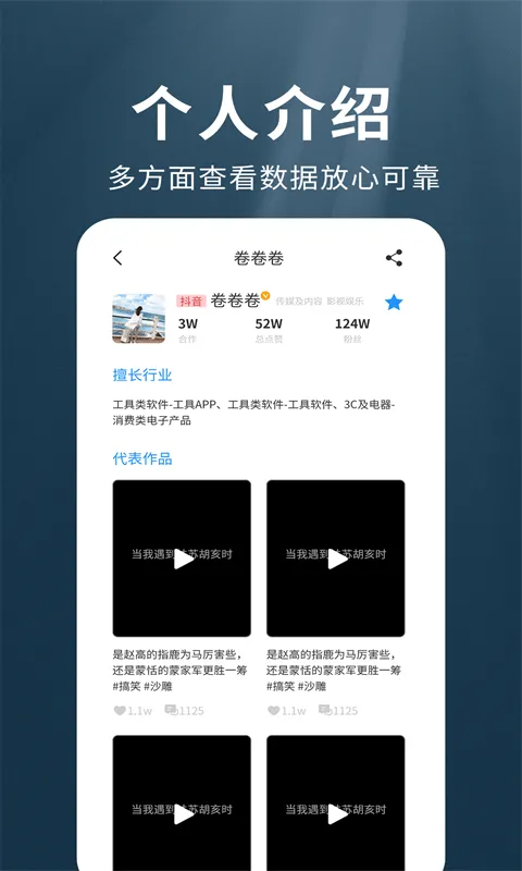 1、服务多元:既服务品牌商家,也服务专业网红主播、达人、博主、明星艺人等,搭建起双方合作的便捷桥梁。