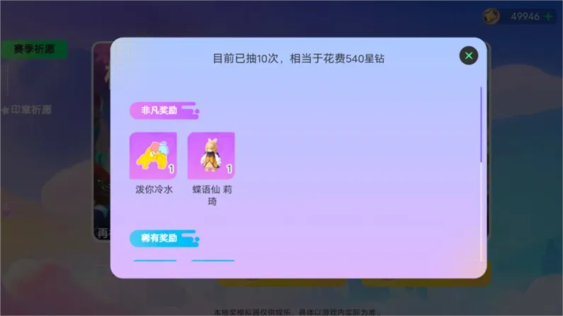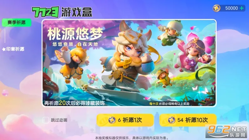 2、该版本玩法简单,进入游戏获50000星愿币抽皮肤角色,用完可自行添加,全程免费。