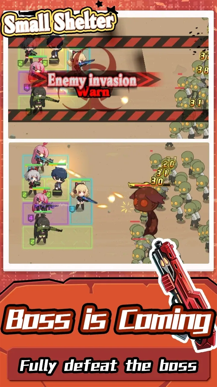 《小型庇护所》是末日生存策略塔防游戏,Q版二次元画风。玩家在像素网格布置角色,用特色武器抵御僵尸潮,能魔法融合升级角色。动态关卡难度递增,需灵活调阵容,注重生存策略与资源管理 。
