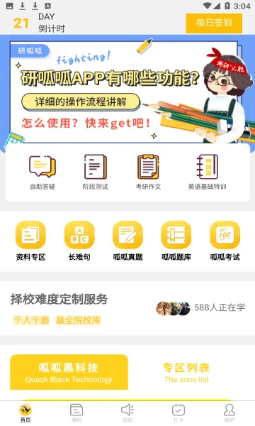 研呱呱是重庆研达网络开发的考研学习软件,提供海量专业课程,由知名老师直播讲解。有智能推荐、在线模考等功能,还涵盖全面资讯、学习资料,助考生高效备考 。