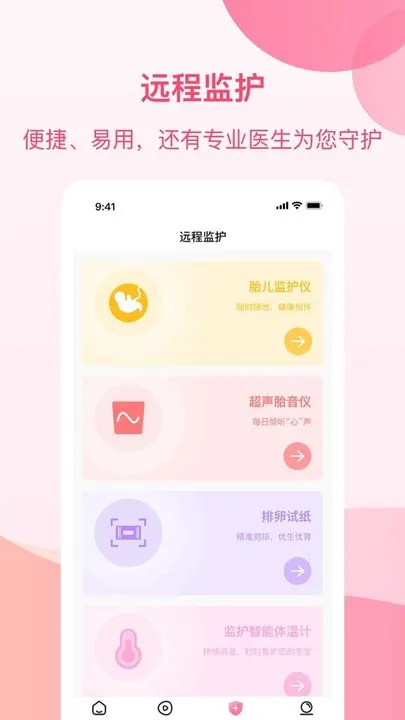 孕e家是广州默尼开发的母婴健康应用,与知名医院合作,有上千妇产科医生。提供孕妇学校、远程监护等功能,能监测胎心、查孕期百科、在线问诊,还可记录孕检等,守护孕期健康 。