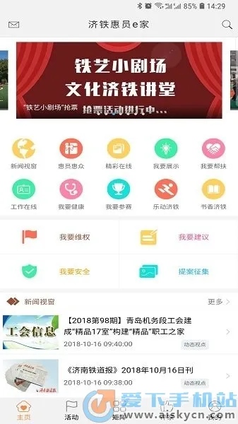 1、济铁惠员e家(职工服务平台)为铁路职工提供便捷服务与福利,职工能借此获取服务、参与活动、了解资讯。