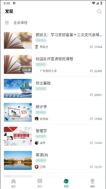 1、课程丰富多样,涵盖思想道德、英语、计算机等多领域,满足不同用户学习需求。