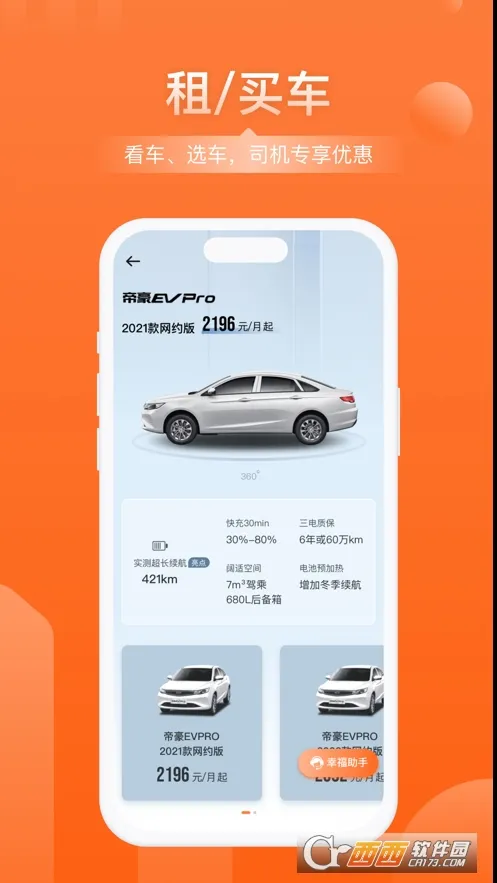 2、优惠租购,在线能享受优惠福利,让司机在租车购车时更高效参与,节省开支。