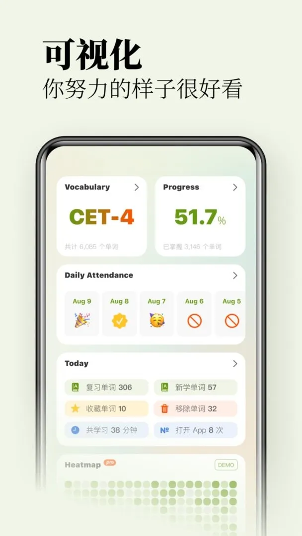 3、具备智能记忆算法,依据多维数据生成契合记忆规律的单词流,通过多种复习方式强化记忆,提升学习效果。