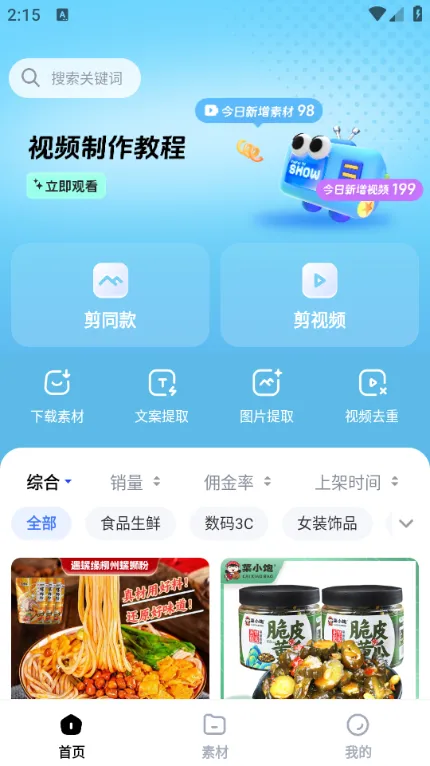 1、天天速剪2025官方最新版本资源丰富,涵盖海量热门商品模板,满足多样剪辑需求。