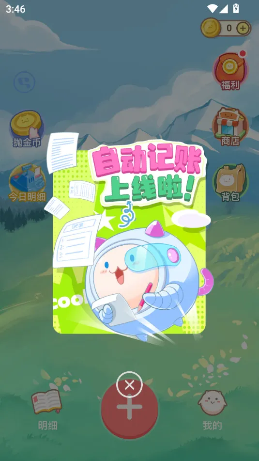 1、界面设计可爱,以卡通形象团团陪伴用户记账,让记账过程更具趣味性与互动性。