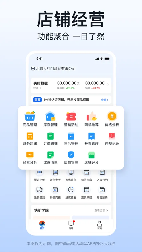 1、功能聚合,涵盖店铺经营、商品管理、订单管理等多方面,让合作商能全面掌握业务动态,轻松应对各类经营事务。