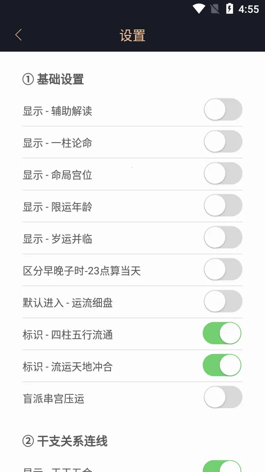 3、四柱排盘干支关系一目了然,精确到大运流年以及流月,操作便捷;紫薇排盘能精确到大限流年流月流日,且功能完全免费。