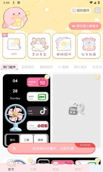 鲸鱼小组件解锁会员为用户带来独特体验。通过特定操作解锁会员后,能享受到一系列专属权益。在小组件的功能运用上更为丰富,可随心定制界面风格,打造个性化布局。会员还能获取更精准的信息推送,无论是天气、日程提醒等都能更及时准确。并且在使用过程中,可免除广告干扰,拥有更流畅、纯净的交互环境。解锁会员进一步拓展了鲸鱼小组件的实用性与趣味性,让用户基于小组件在手机屏幕上构建出更高效便捷且独具特色的使用场景 。