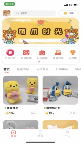 3、设有积分商城,抓中的娃娃可兑换积分,进而换取海量萌物和实用商品,满足多样需求。