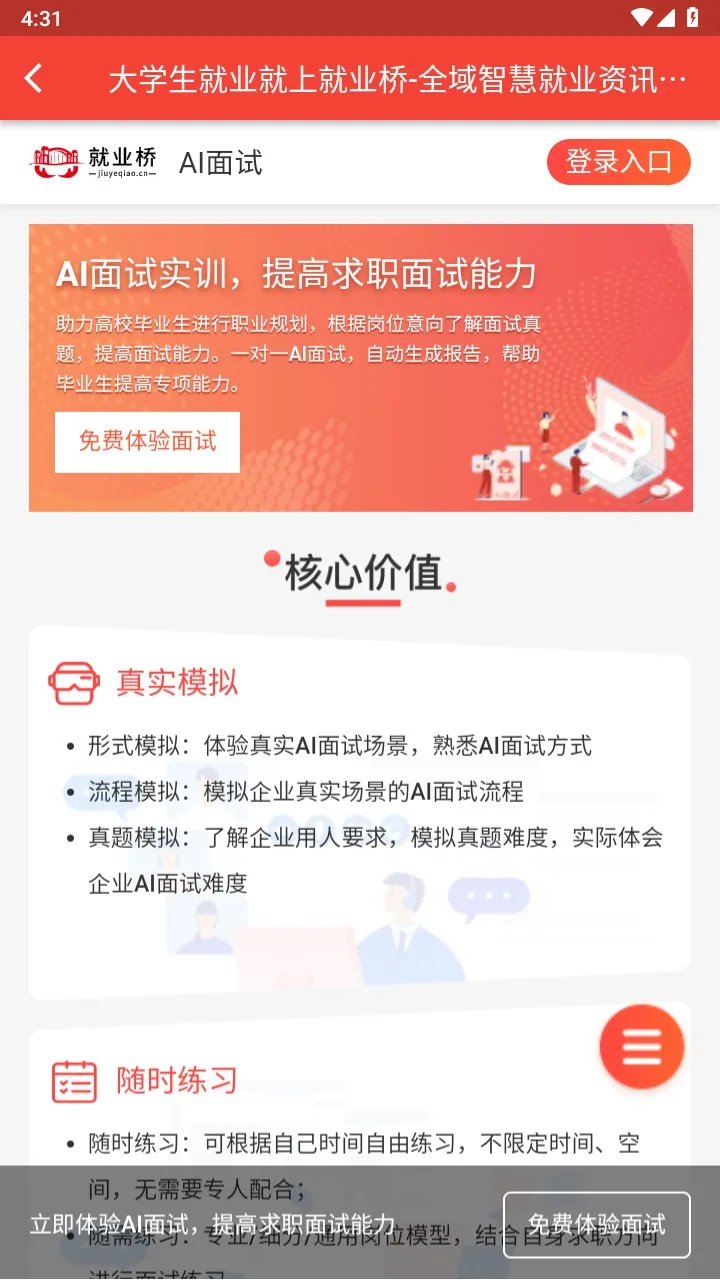 1、就业桥最新手机版提供一站式全流程求职服务,涵盖找工作、考研、考证等多样服务模块,满足各类求职需求。