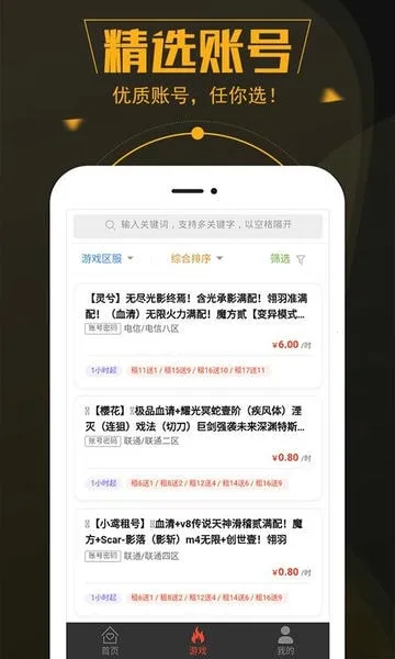 2、账号资源丰富,每天上架海量优质大神账号,涵盖王者、火影、和平精英等热门游戏,有极品绝版皮肤。