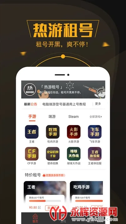 热游租号2025官方最新版本,为玩家提供王者、和平精英等热门游戏租号服务。账号优质实惠,有极品绝版皮肤,上号简单。还有优惠活动、金牌售后,优化后体验更流畅 。