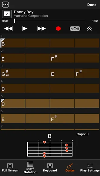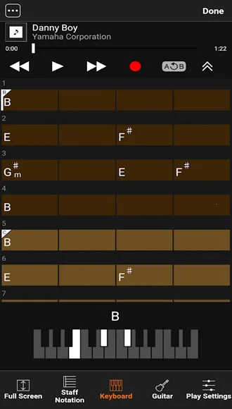 Chord Tracker 2025 最新版本由雅马哈打造,可分析手机音频歌曲自动扒谱,显示和弦图。支持自定义速度、琴键,编辑和弦,还能导出成果,不过 DRM 保护及流媒体歌曲受限 。