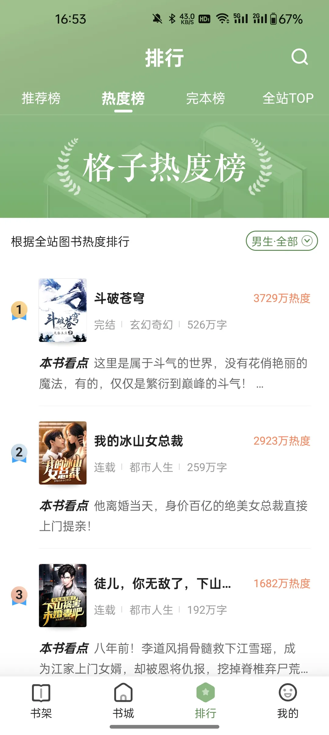 4、有实时更新的热门排行榜,能助用户了解当下火热小说,还可通过智能推荐系统获取个性化书单。