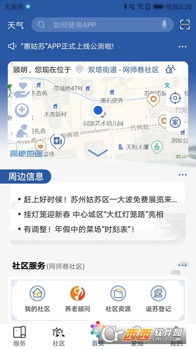 惠姑苏是苏州市本地生活服务软件,基于网格化管理理念,围绕居民、企业多方面需求,提供政务、便民服务,还有本地资讯、社交、消费等功能,满足衣食住行各方面需求 。