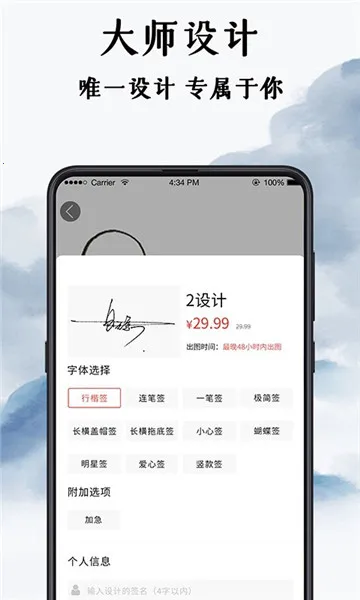 2、该软件由大师真人在线手写定制签名,一笔一划勾勒完美细节,符合用户独特气质,极具个性与艺术感。