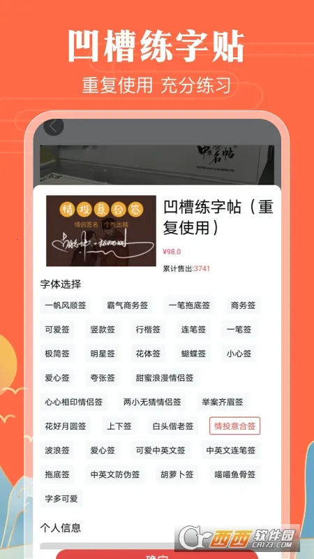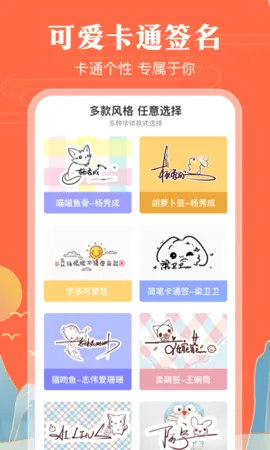 1、风格字体多样,能满足不同风格展现需求,有霸气潇洒、可爱软萌等风格,上百种签名字体任用户挑选。