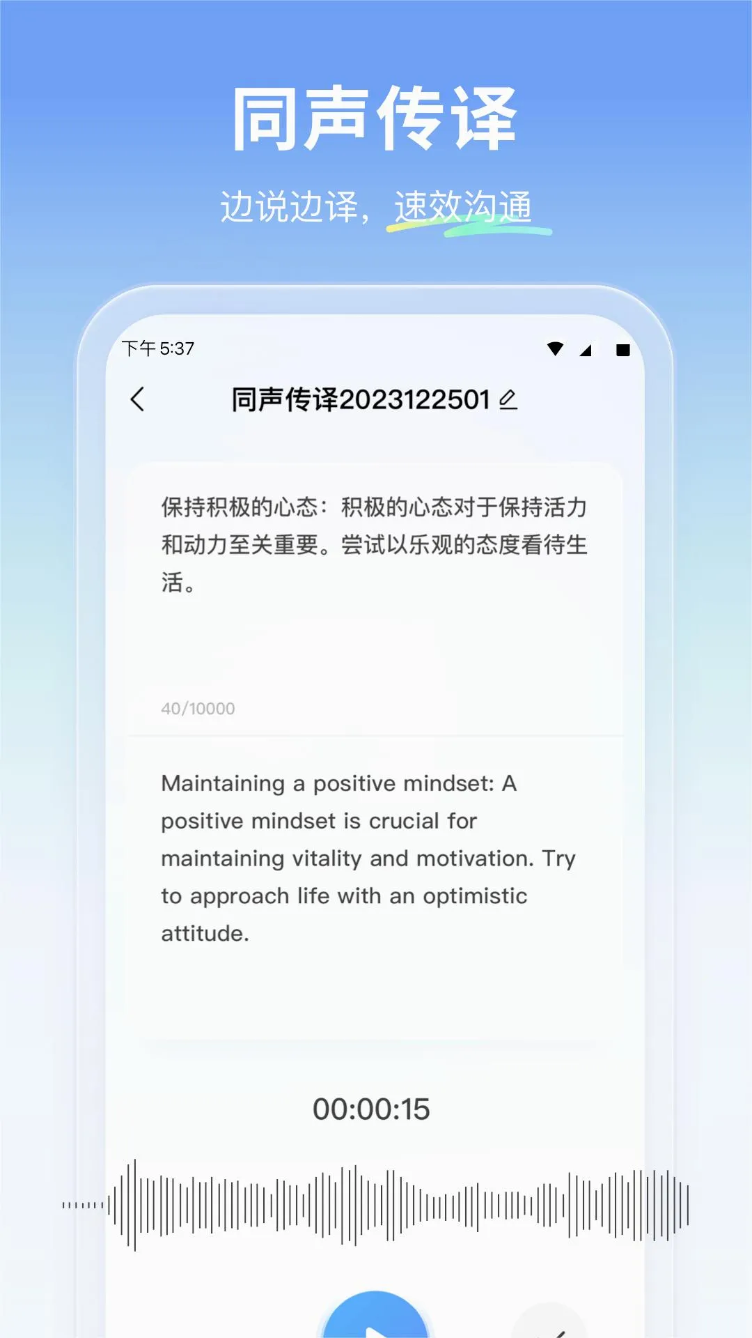 3、模式多样,拥有录音、同声、文本、拍照等多种翻译模式,能满足不同场景与用户需求。
