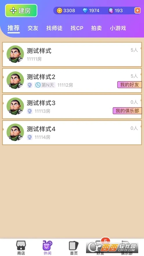 3、社交玩法多样,俱乐部、好友、师徒、CP等暖心相伴,还有休闲区娱乐房可嗨唱聊天。