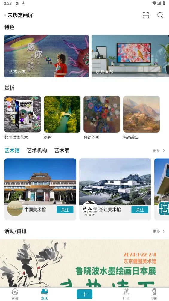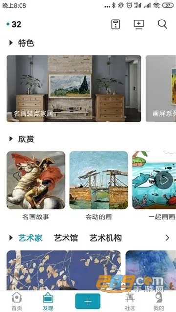 4、软件界面简洁美观,布局清爽,还具备艺术圈社交功能,爱好者可在此互动分享,秀出生活品味 。