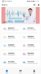 1、学习资源丰富:智医云考试题库2025最新版本为医护人员提供了丰富的在线课程、模拟考试和医学数据库,多样的医学题库涵盖职业资格考试全科知识,还有免费网课和图书商城里的各类医考学习材料,能满足不同学习需求。