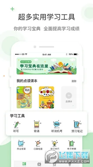 4、配套功能丰富:有听写、背诵、预习笔记、口算、检查作业答案、名著阅读等实用学习工具,后续还会围绕点读研发配套动画课程、预习课程、听写背诵等功能,同步预习课和课本习题讲解助力孩子学习。