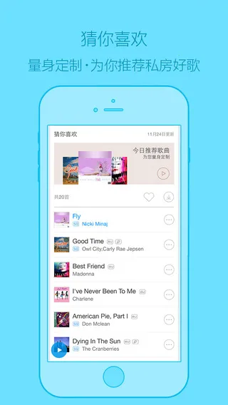2、个性化推荐贴心:根据用户听歌历史和喜好,用智能算法定制专属个性化歌单,深度发掘优质音乐,还能根据不同场景匹配相应音乐。