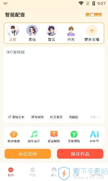 操作界面简洁直观,用户体验友好,上手门槛低。输入文本后,配音生成与预览快速完成,作品支持随时保存与便捷分享导出。