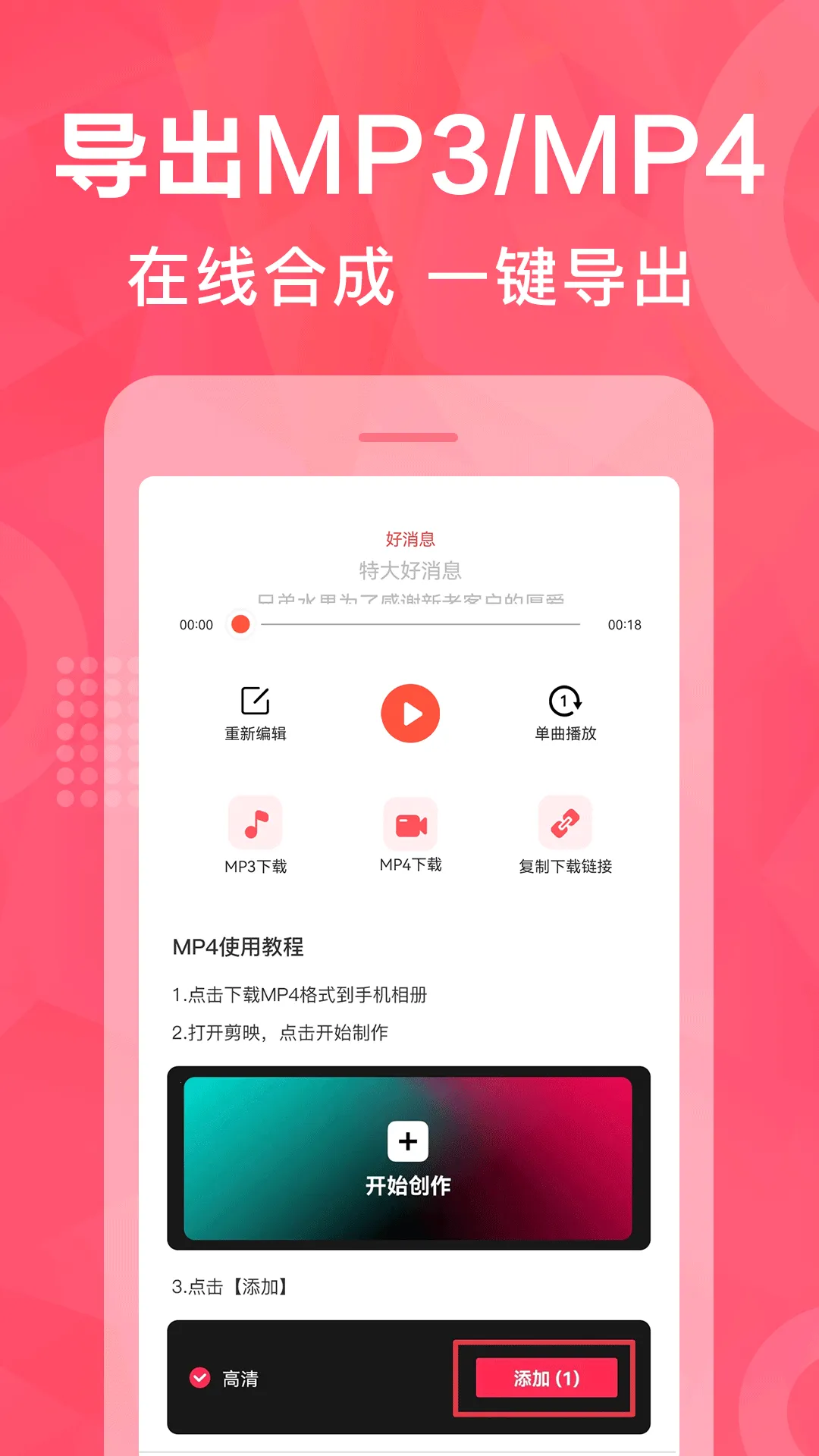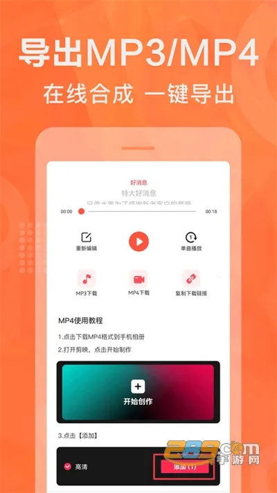 4、软件支持多种音频格式导出,用户可以将配音作品保存为MP3或MP4格式,方便在微信、朋友圈等平台分享。