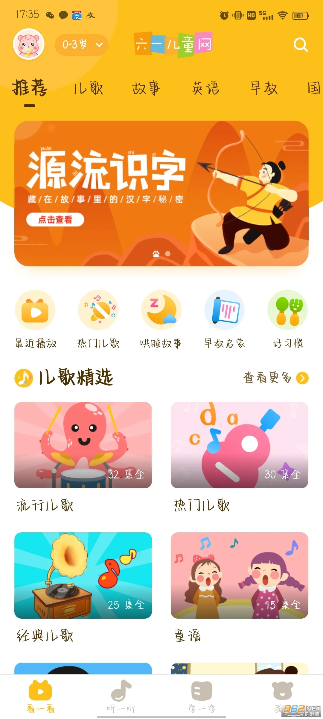 1、六一儿童安卓版手机版内容资源极为丰富,覆盖儿歌、故事、英语、国学、动漫等各方面,能满足不同年龄段孩子的学习与娱乐需求。首次进入选择宝宝年龄段后,系统会自动推荐合适内容,像看一看栏目能轻松找到各类儿歌资源,学一学板块还有早教启蒙课程,助力孩子全面发展。
