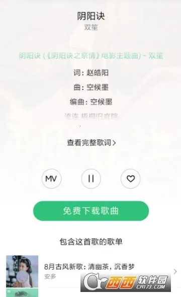 4、功能丰富,有清爽的界面风格,支持排行榜查询、歌词显示,支持FLAC、高品质MP3、最高品质MV、歌词下载,下载到本地后还能分享,支持自定义下载路径。